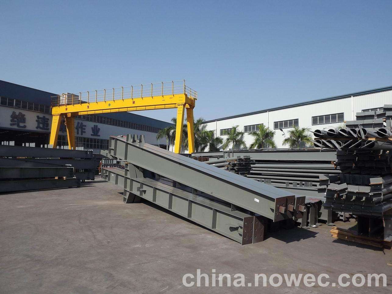 条状单元一般沿长跨方向分割,其宽度约为1~3个网格,其长度为l2或l2/2(l2为短跨跨距)。块状单元一般沿潍坊网架平面纵横向分割成矩形或正方形单元。每个单元的重量以现有起重机能胜任为准。条(块)与条(块)之间可以直接拼装,也可空一网格在高空拼装。由于条(块)状单元是在地面拼装,因而高空作业量较高空散装法大为减少,拼装支架也减少很多,又能充分利用现有起重设备,故较经济。这种安装方法适用于分割后网架的钢度和受力状况改变较小的各类中小型网架,如两向正交正放四角锥、正放抽空四角锥等网架。